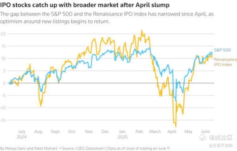 Chart showing narrowing gap between S&P 500 and Renaissance IPO Index since April