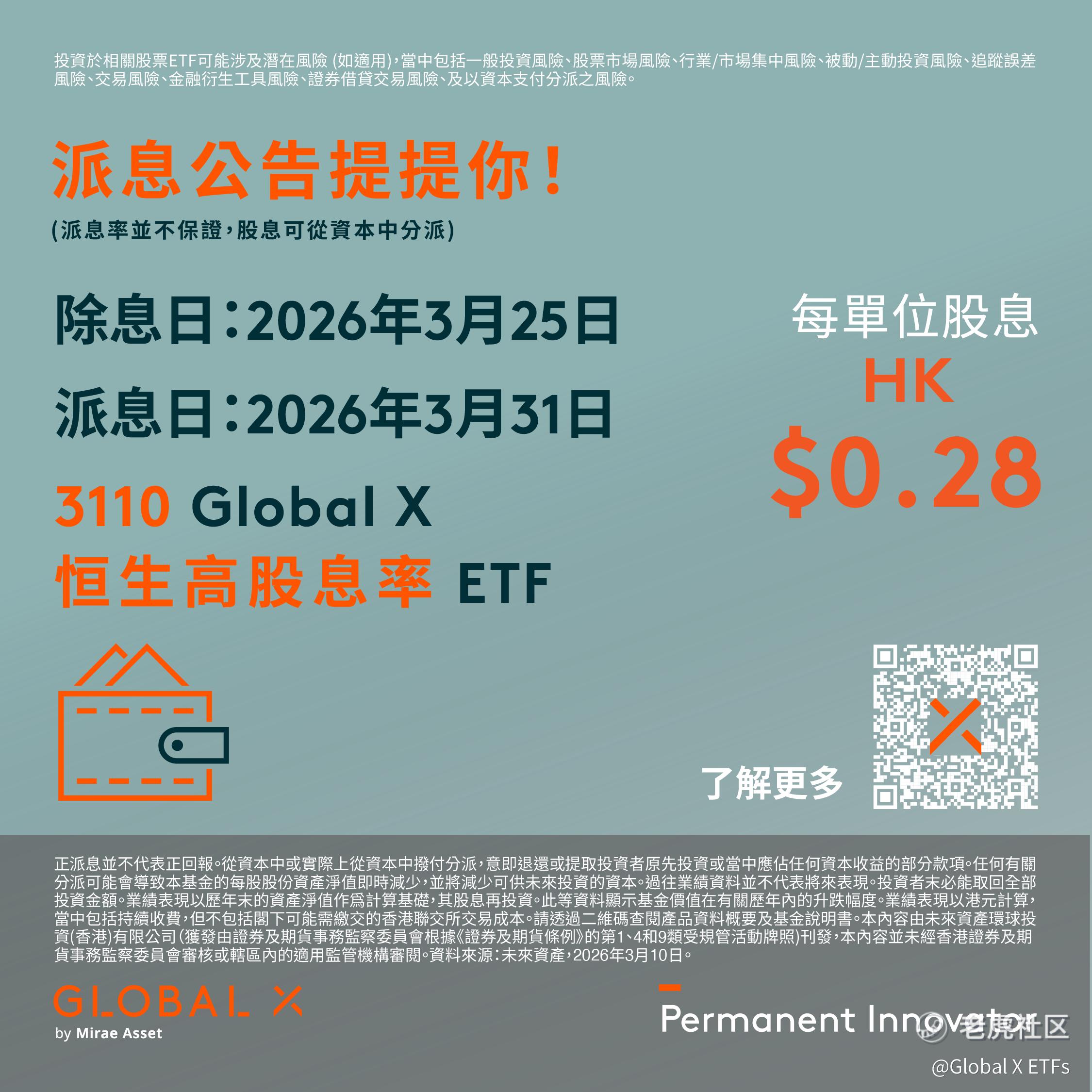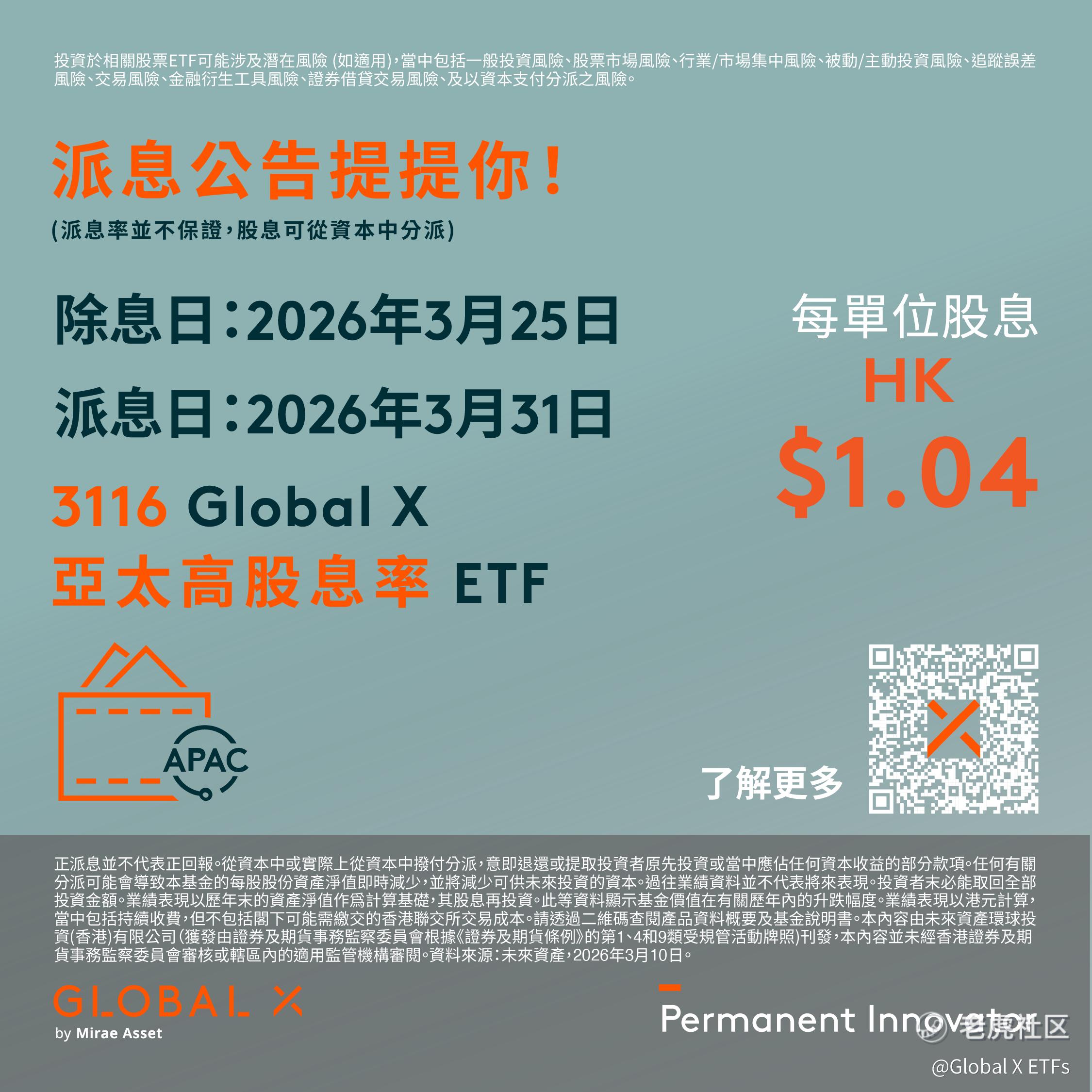 【仅供香港投资者参考】📢 派息公告提提你!Global X 恒生高股息率 ETF (3110) $GX恒生高股息率(03110)$ 及 Global X 亚太高股息率 ETF (3116)$3116 即将派息!