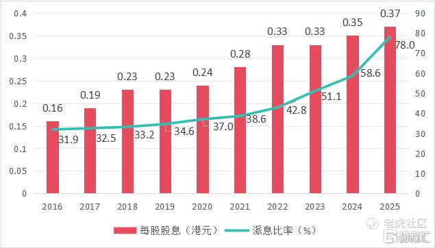 在股东回报层面,公司全年派息比率达到78%,除常规派发每股0.37港元的末期股息外,还额外加派每股0.03港元的特别股息,整体分红力度较上年同步提升,回馈股东力度持续加码。