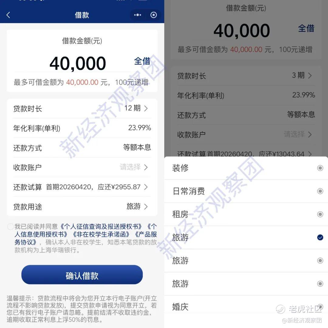 此外,针对个人消费贷利率,监管部门近期持续推动利率下降。其中据业内消息称,监管近期向持牌消金公司下达压降个人贷款综合成本至20%的窗口指导,小贷公司的新发贷款综合成本在2027年底前降至4倍LPR以内;同时银行业整体贷款利率下行已成趋势,多家银行普惠型小微企业贷款利率已压降至4%左右。在此背景下,华瑞银行个人消费贷贷利率逼近24%,明显与监管倡导的“降低综合融资成本”导向相悖。同样,在此前新网银行的贷款广告中,最高利率也是逼近24%。