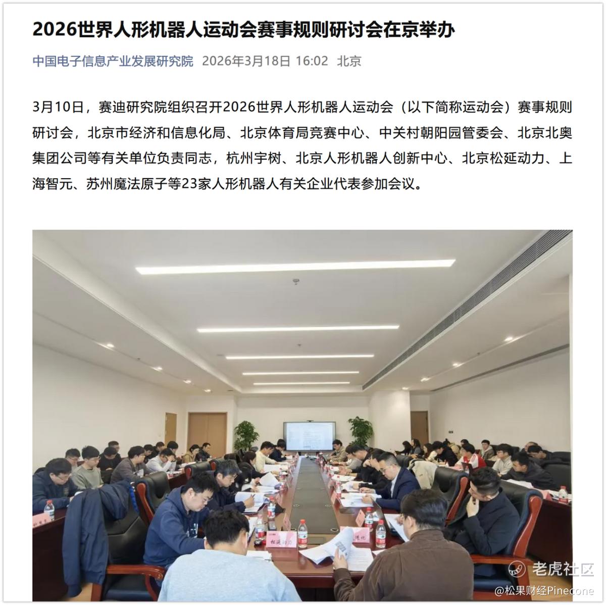 今年4月,北京亦庄将举行一场机器人半马。此外,前几天,2026世界人形机器人运动会赛事规则研讨会已经在北京举行,与会者都是当下机器人产业的明星公司,包括但不限于宇树,今年上春晚的银河通用、松延动力、上海智元、魔法原子等。