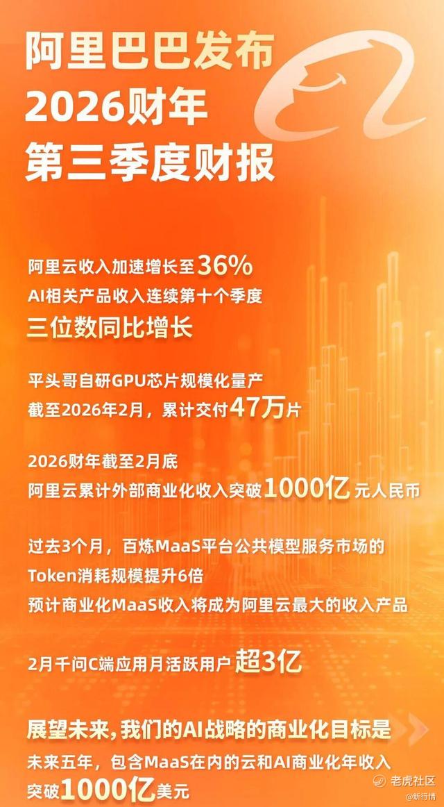 宋辉这里补充一下,阿里巴巴采用的是4月1日至次年3月31日的财年周期,与国内通用的自然年日历不同步。此次发布的2026财年第三财季,实际对应自然年时间为2025年第四季度10月1日至12月31日。