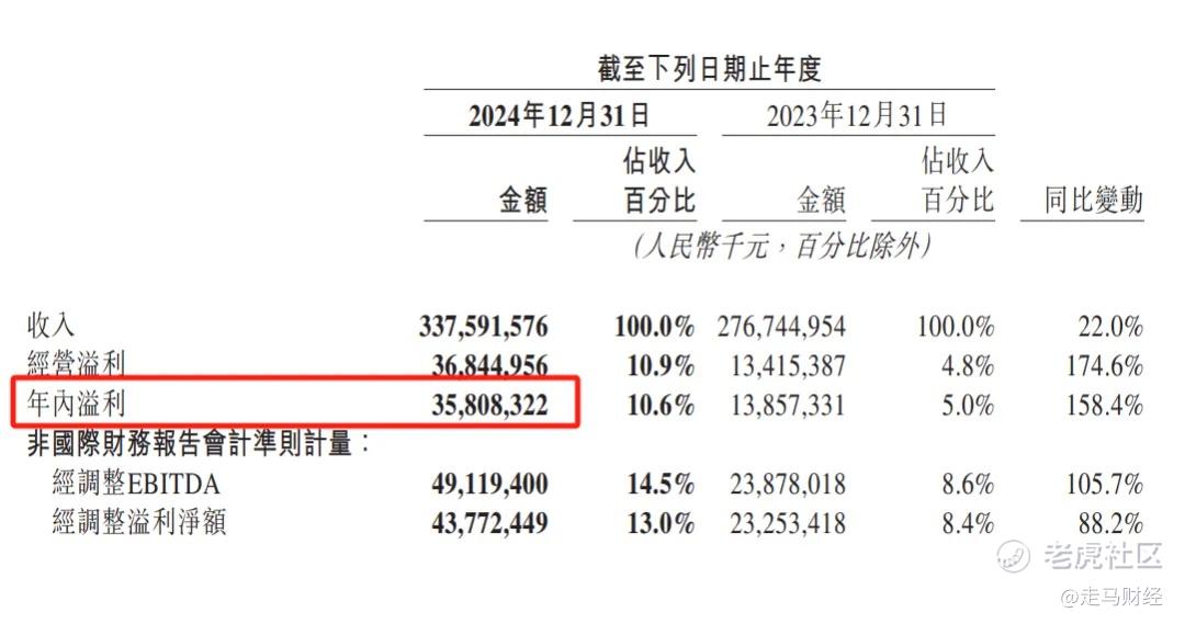 注意,这个数据不是经调整EBITA数据,也不是经营利润,而是财报中的“年内溢利”数据,因为公司也说了,2024年这一数据为盈利358亿: