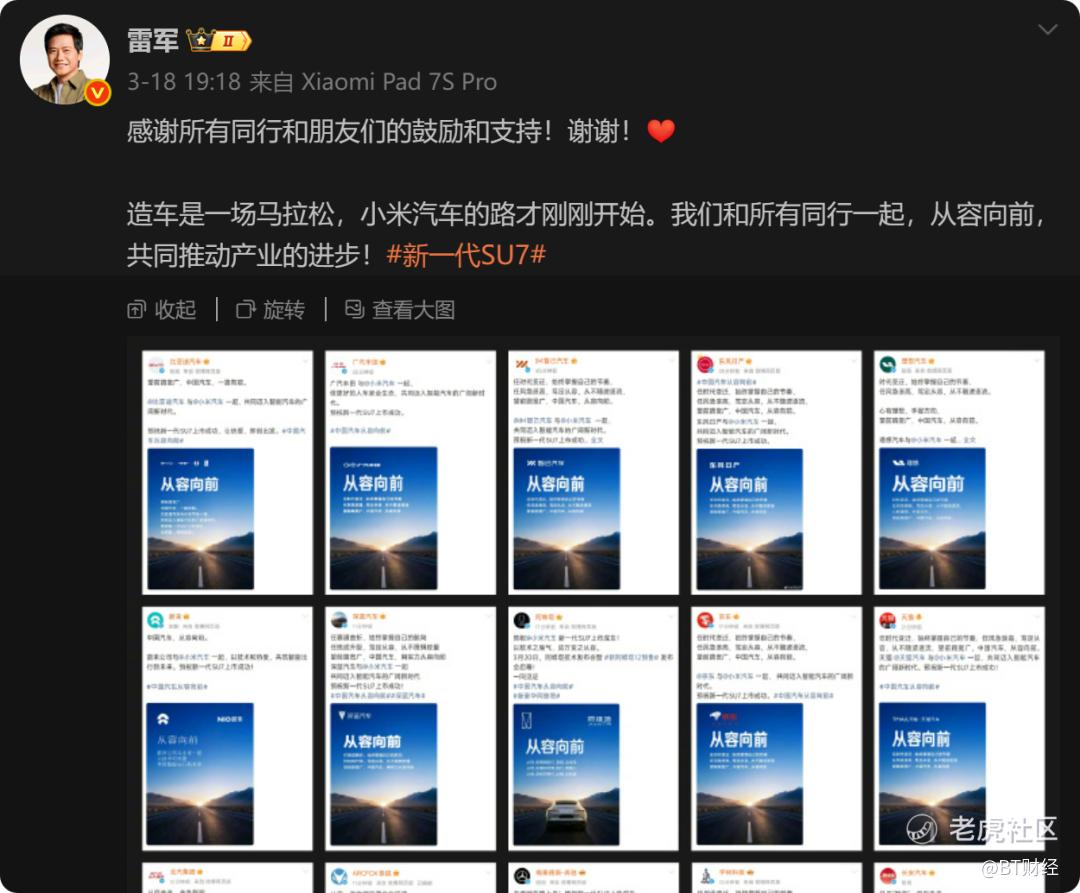 小米汽车SU7的发布,无疑是中国新能源汽车市场的一枚重磅炸弹。然而,在这场产品大秀之外,雷军通过一条微博晒出的15家车企及供应链巨头的祝福海报,以及发布会现场星光熠熠的合影,构成了另一场更为深远的行业事件。从比亚迪、蔚来到奔驰、理想,再到京东、阿里,这张几乎涵盖中国汽车与科技圈顶级力量的“全家福”,不仅彰显了雷军深厚的行业人脉,更在客观上为小米汽车节省了巨额的营销费用,完成了一次高维度的品牌背书。