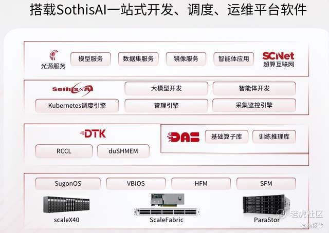 因此,scaleX40作为普惠超节点,进行了全链路极简优化。一方面抛弃铜缆布线,改用无线缆正交对接架构,免去了繁琐的理线工作,消灭了运维噩梦,又大幅降低硬件损耗,设备可靠性提升到99.99%,很少出故障。此外,搭载SothisAI一站式平台,从模型训练、推理部署到日常监控、故障排查,全流程闭环操作,就算有问题也能快速排查,再也不用担心硬件故障耽误进度。