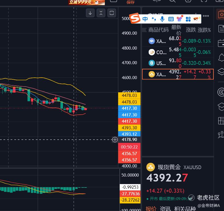 $黄金/美元(XAUUSD.FOREX)$ 黄金建议早盘4392-4388附近买多、目标15-30个点、保护4381