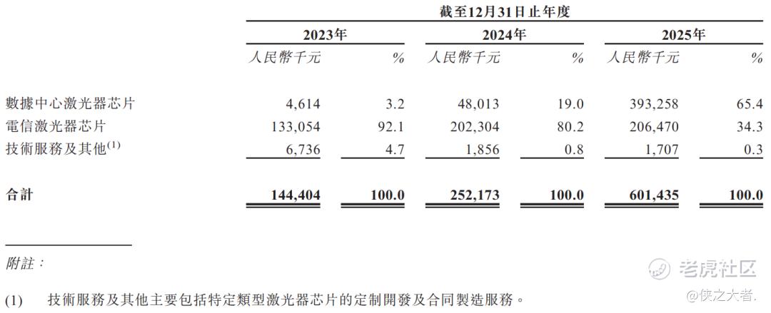 公司收入主要来自激光器芯片销售,其中数据中心激光器芯片是最核心来源,2025年收入占比超65%,为收入重大部分;电信激光器芯片收入占比次之,保持稳定;技术服务及其他业务收入占比最小。