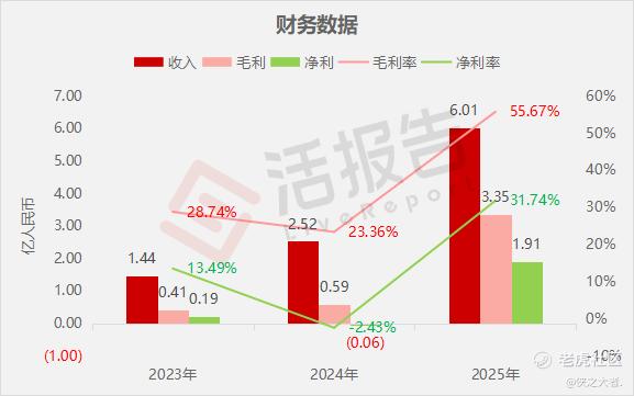 收入分别约为人民币1.44亿、2.52亿、6.01亿,2025年同比+138.50%;
