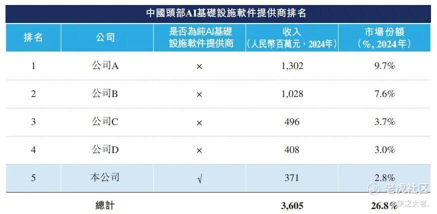 • 按收入计,公司是中国第五大AI基础设施软件供应商,2024年市场份额达2.8%,同时亦为市场最大纯服务供应商。