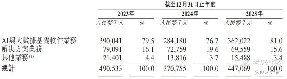公司的业务模式围绕产品,以自主研发的专有软件平台的商业化为核心。公司的业务主要分为三条业务线:(i)AI与大数据基础软件业务;(ii)解决方案业务;及(iii)其他业务。