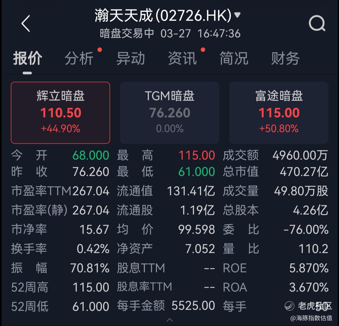 今天暗盘的4只新股,预期最低的 $瀚天天成(02726)$ ,在开盘甚至是破发的。这只没有重点参与,却意外的给我分了2手,意外的成为我今天新股的最大利润:
