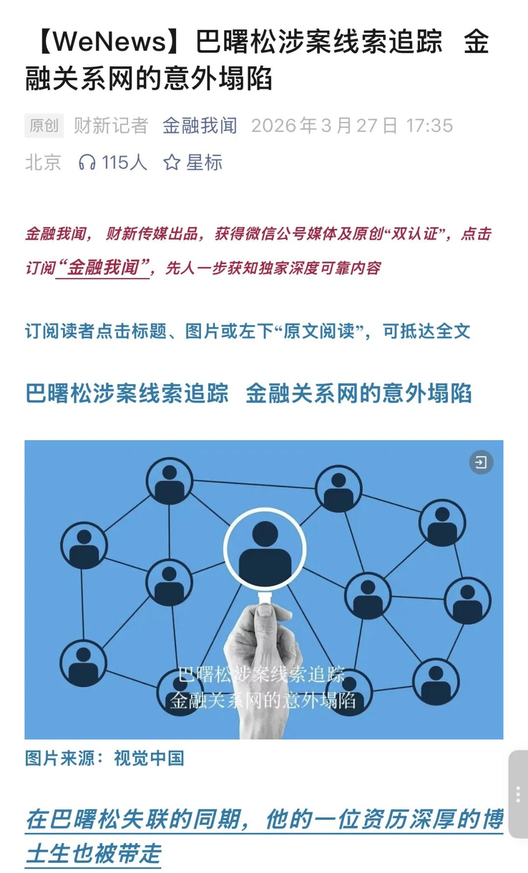 巴曙松涉案金额巨大!他的一位博士学生也被带走