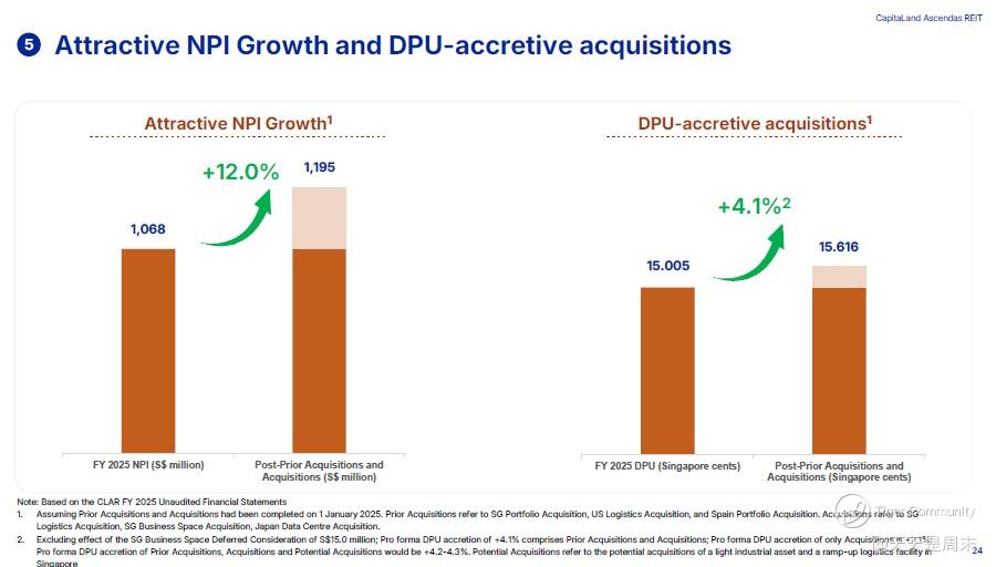 派息 (DPU): 预估增长 4.1%。虽然股本变多了,但分红还是跟得上,这是良性扩张。如果新资产的租金调升未来跟不上通胀,这预估增长会被稀释。
