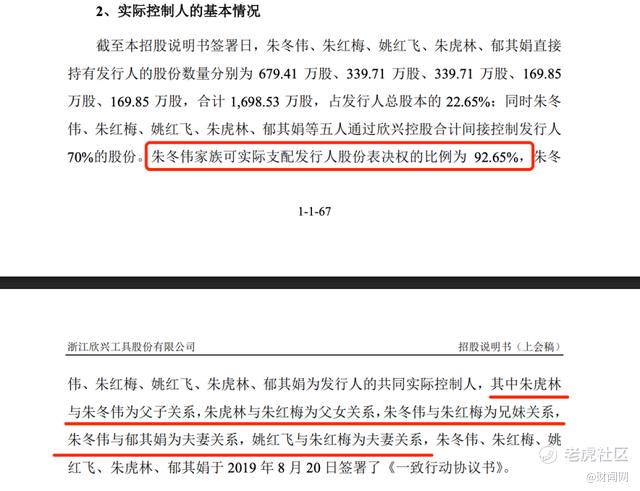 欣兴工具的股权结构是其IPO争议的核心源头,招股书显示,本次发行前,实控人朱冬伟家族通过欣兴控股(家族100%控股)及直接持股方式,合计控制公司92.65%的股份。