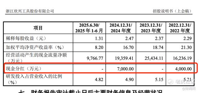 数据显示,2020-2022年主板申报报告期内,公司累计现金分红3.63亿元,占同期累计净利润4.76亿元的76.2%;2024年再次分红7000万元,四年累计分红超4.33亿元。