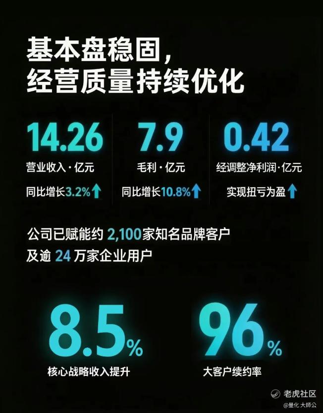 说实话这份财报,算不上多么惊艳,但它传递出的信号足够清晰:这家公司正在从一个数据智能服务商,进化成一个按效果付费的AI原生运营商。 而进化本身,就是最好的安全垫。