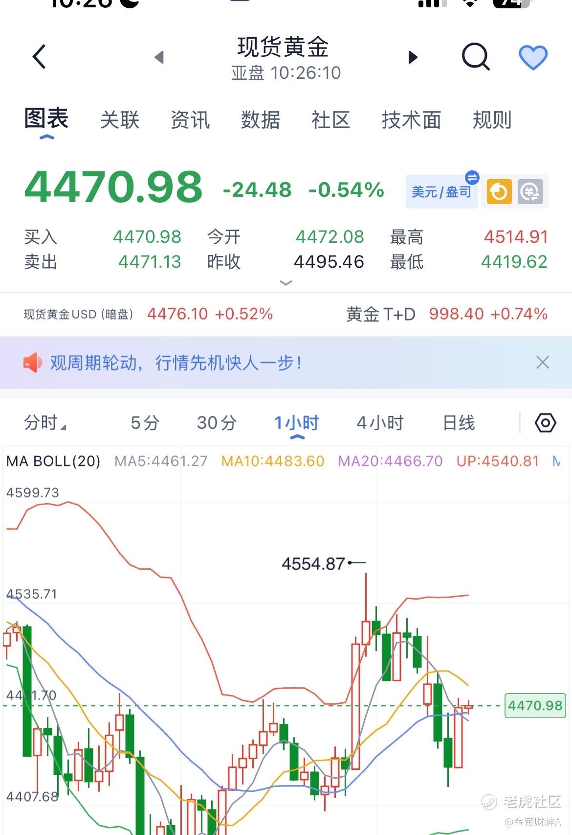 早上好,黄金早盘建议4471-4468附近买多,目标15-30个点,损9个点