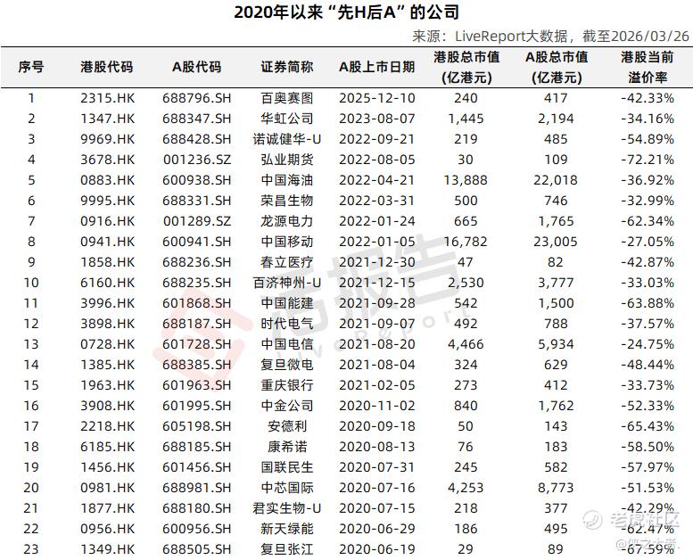 据**大数据统计,目前累计已有超过百家A+H公司为“先H后A”上市。