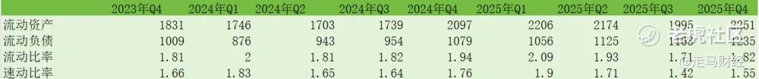 四季度美团流动资产2251亿,流动负债1235亿,流动比率1.82,速动比率1.55,环比三季度均大幅改善。