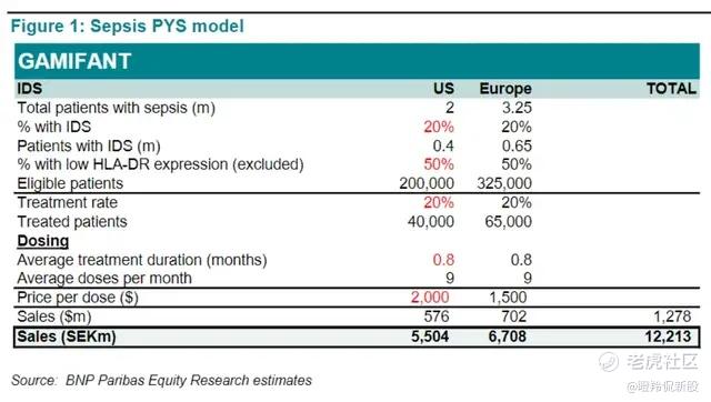 目前市场较关注的竞品Gamifant仅针对特定亚型IFNγ驱动型脓毒症(IDS),该亚型约占脓毒症患者的20%,且在接受治疗前需检测患者IFNγ高表达、CXCL9升高且不伴免疫麻痹,适用范围极为受限。即便如此,BNP Paribas SA在20%患者占比、排除HLA-DR低表达(50%)的假设背景下,在美国+欧洲的市场销售机会仍给出了接近13亿美元。反推STC3141作为广谱脓毒症治疗药物,潜在美欧市场销售机会至少130亿美元,还未计入中国250万潜在患者。