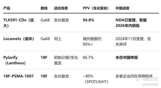 其中,TLX591-CDx将成为继易甘泰之后的下一个商业化重磅品种。该产品国内三期顶线结果优异:超100例前列腺癌根治术/放疗后生化复发患者总体PPV达94.8%,极低PSA水平亚组PPV仍大于90%,能在疾病早期复发阶段实现精准定位,预计2026年内在国内获批上市。海外方面,2025年TLX591-CDx的全球收入约6亿美元,凭借更高特异性和稳定供应,市占率节节攀升,成为全球最畅销的诊断性核药之一,而诺华Locametz则因定位和产品劣势在美国市占率趋低。TLX591-CDx在国内拥有更好的竞争格局,上市后大概率复刻海外放量趋势。靶向PSMA治疗性核药TLX591已加入国际多中心III临床,第一部分已成功达到主要目标,这一诊疗一体化产品组合将很快在国内市场大展拳脚。
