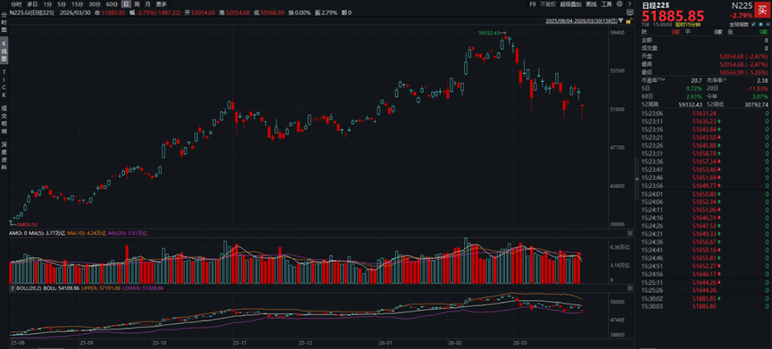3月30日,日本股市明显走弱,日经225指数收跌2.79%,盘中一度出现更深跌幅;Topix指数同步下跌约2.9%。
