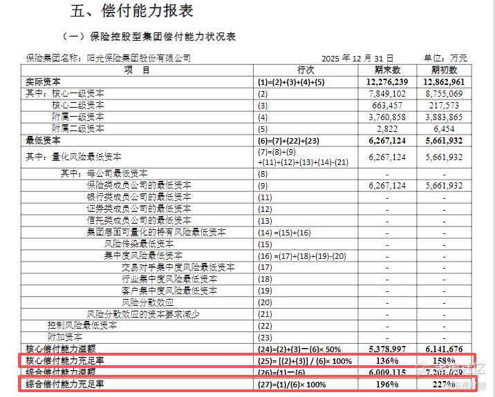 来源:阳光保险2025年度偿付能力报告摘要