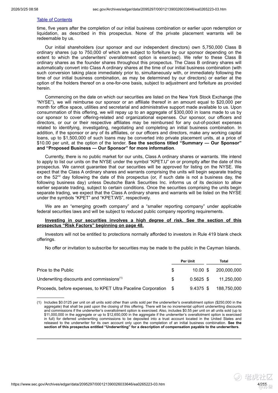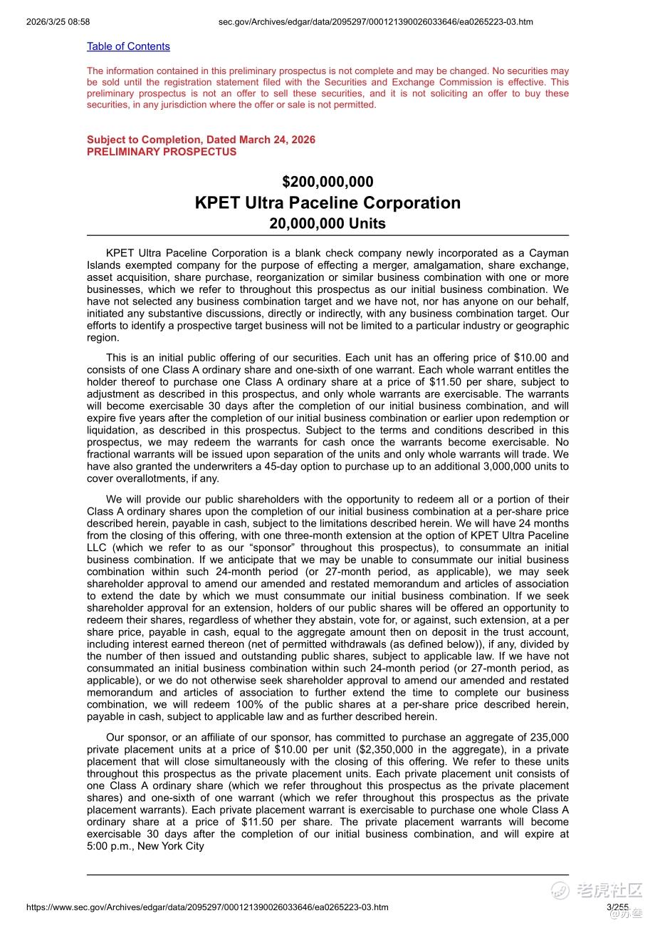 $KPET ULTRA PACELINE CORP(KPET.U)$
