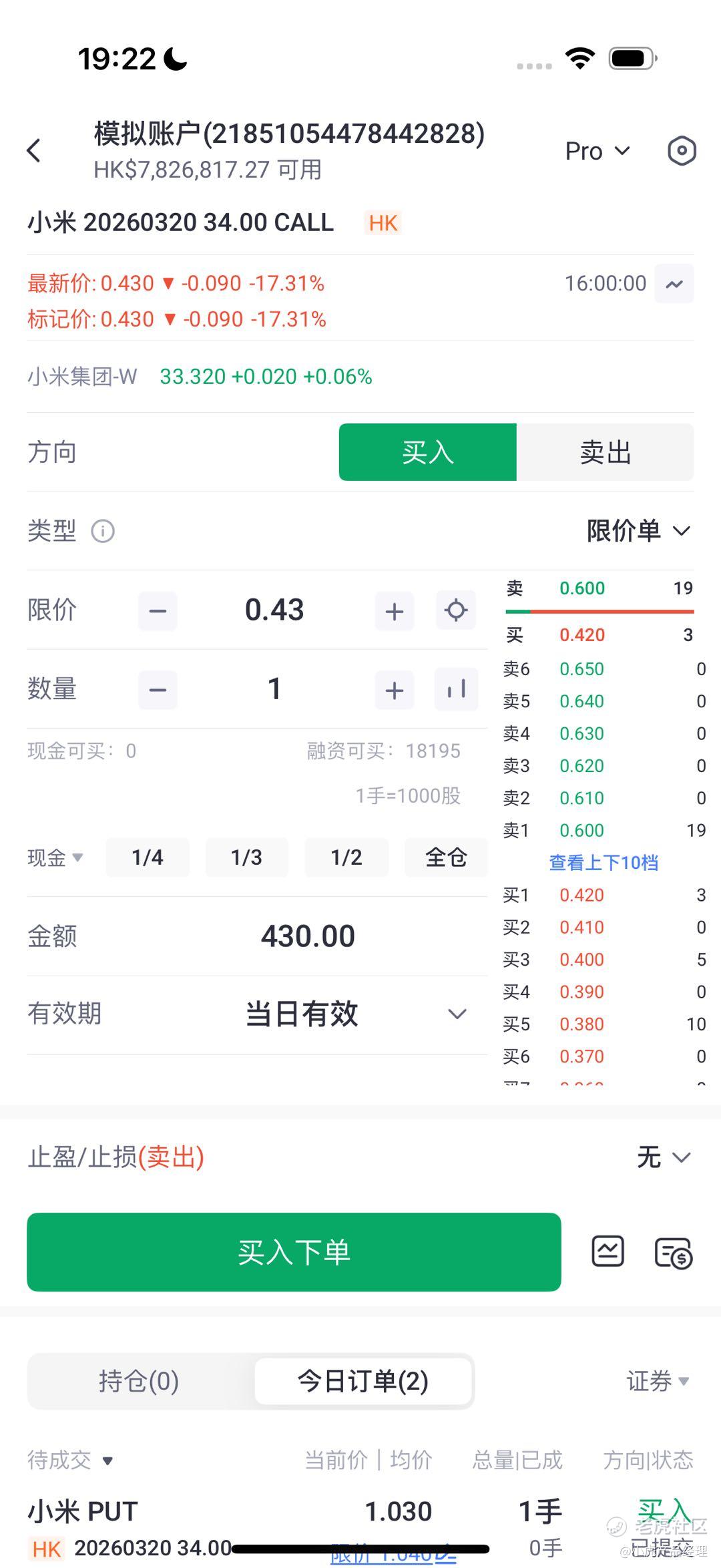 【新增】港股单腿期权模拟交易上线,提供接近真实市场的无风险练习环境。无需真实资金即可体验完整交易流程。
