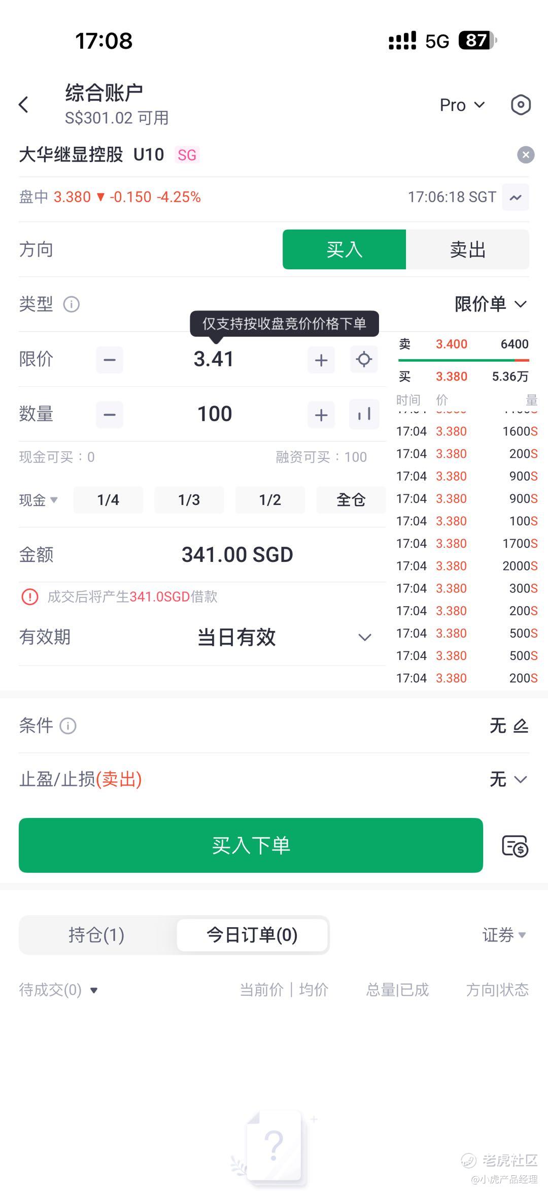 【优化】新加坡股票盘后固定价格交易(TAC)时段优化下单规则,帮助提升订单成交效率。
