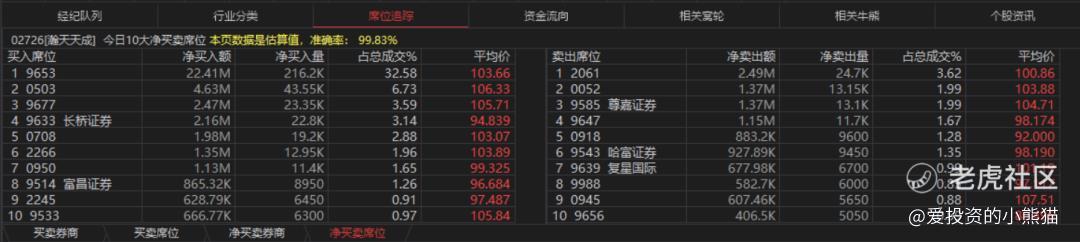 瀚天天成(02726.HK)买盘席位有9653、0503、9677、9633、0950等,卖盘第一席位是2061,0945在卖盘第九席位。