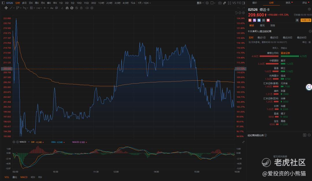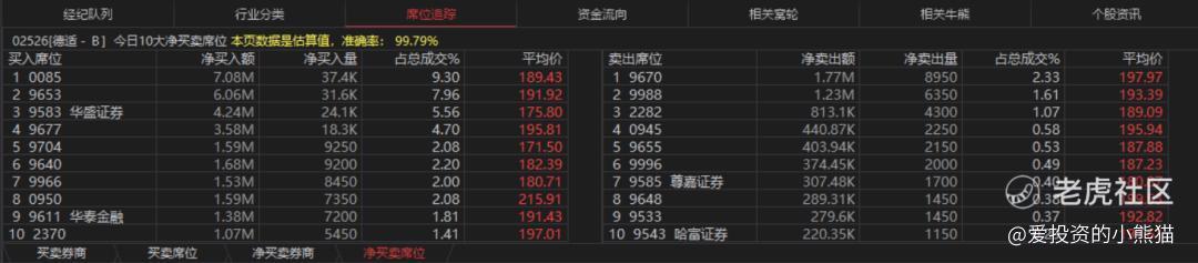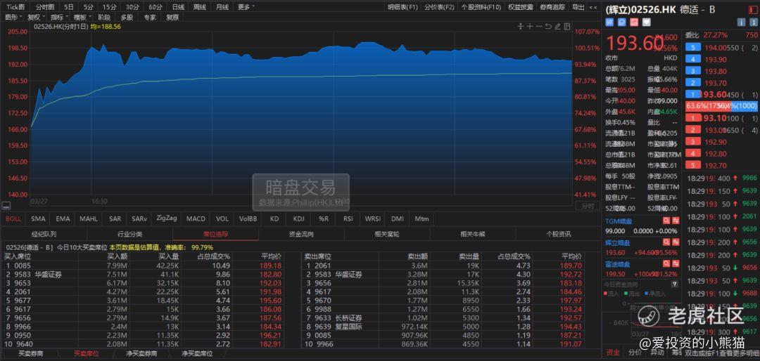 德适-B(02526.HK)买盘席位有0085、9653、9583、9677、0950等,卖盘第一席位是9670, 0945在卖盘第四席位。