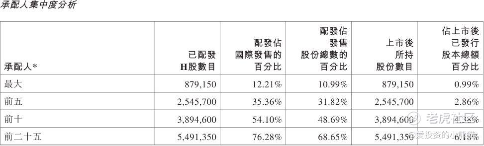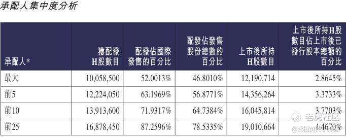 瀚天天成(02726.HK)国配货是比较分散,前25大承配人上市后所持股份数目占上市后已发行股份总数4.47%。瀚天天成(02726.HK)这个票没有稳价人,也没有绿鞋。