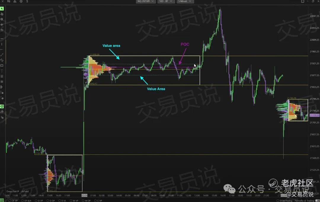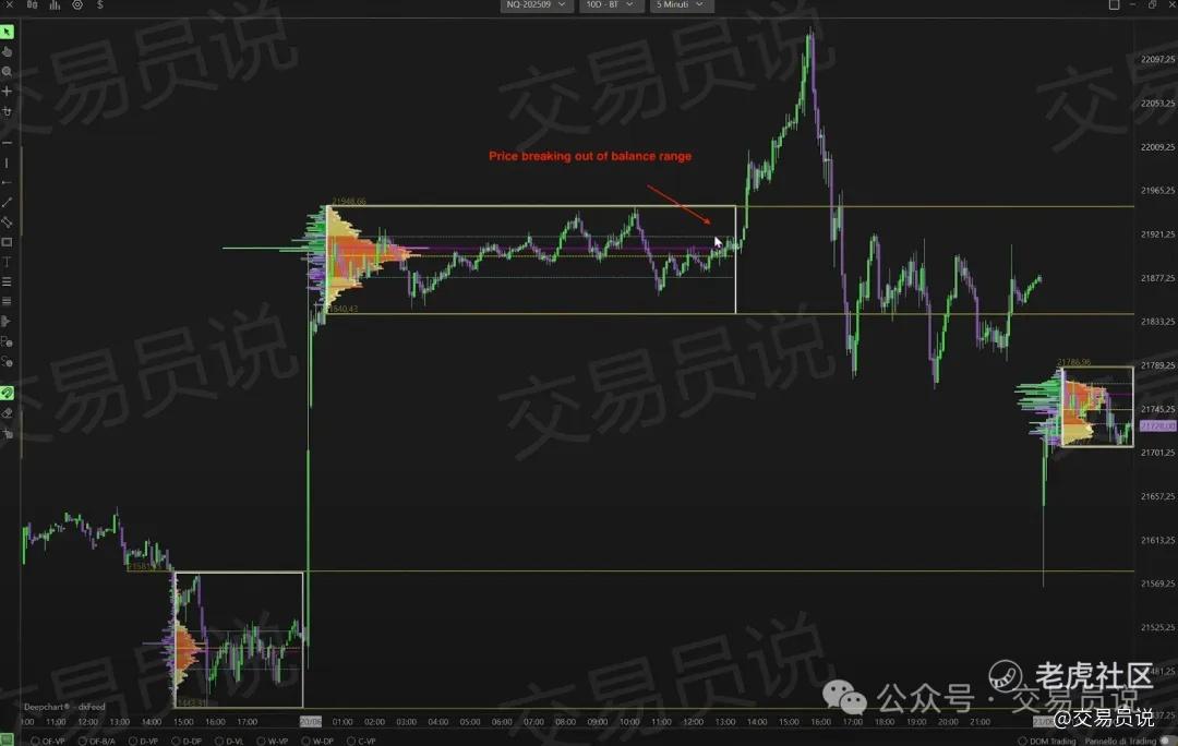 “拍卖市场策略”的核心是通过成交量分布和订单流来判断市场何时处于平衡状态,何时处于失衡状态,以及在不同市场状态下应如何进行交易。