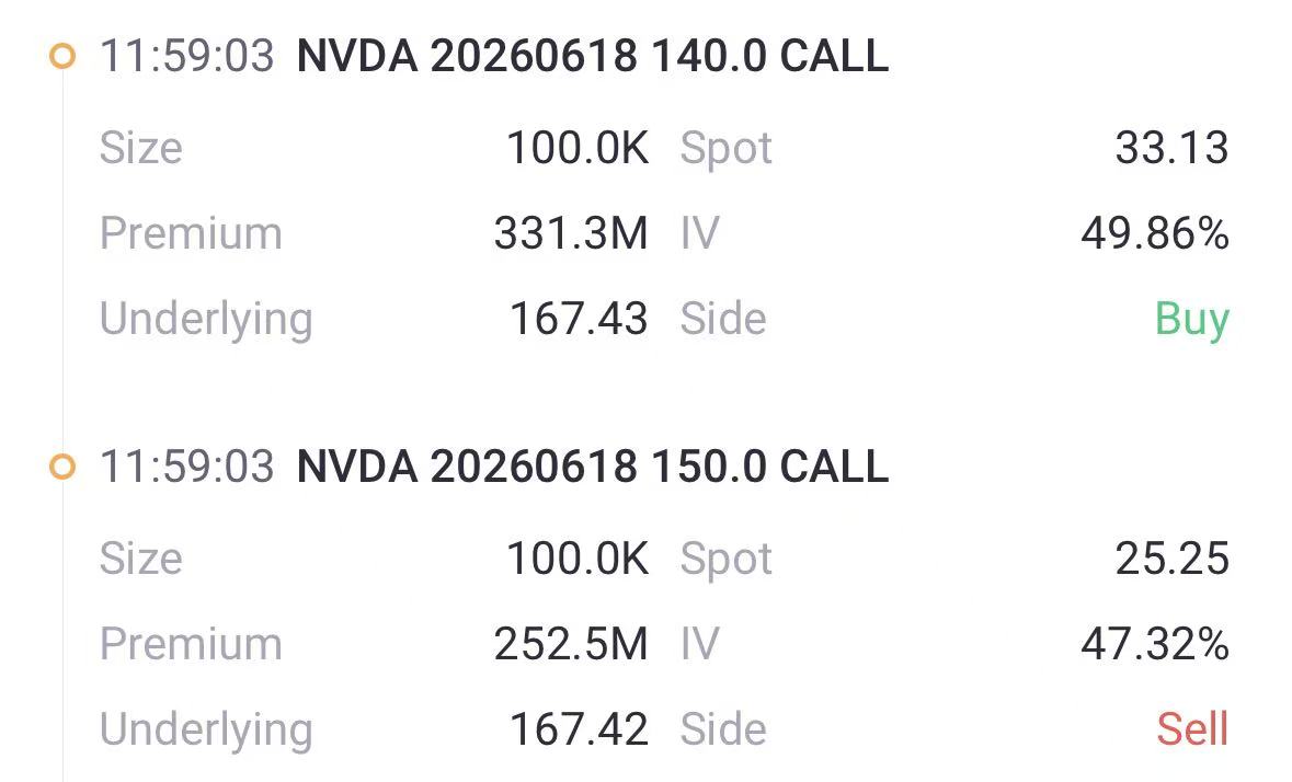 期权聚焦 | 英伟达现10万张大单买入140-150美元牛市看涨价差,机构押注6月温和上涨