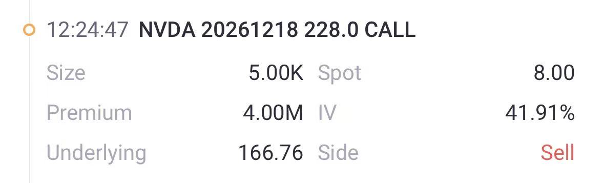 所观察到的卖方大单交易(Sell Put/Call)均涉及卖出深度虚值期权,如150.0的Put和190.0、228.0的Call。这表明有交易者在当前波动率水平下,倾向于通过卖出期权来获取时间价值,并认为股价短期内不会出现极端行情。