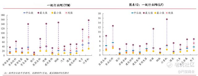 同时,从PE(TTM)看,非银金融(保险券商)、食品饮料、家电等行业当前PE处于历史较低分位,计算机、电子等行业PE处于历史较高分位。