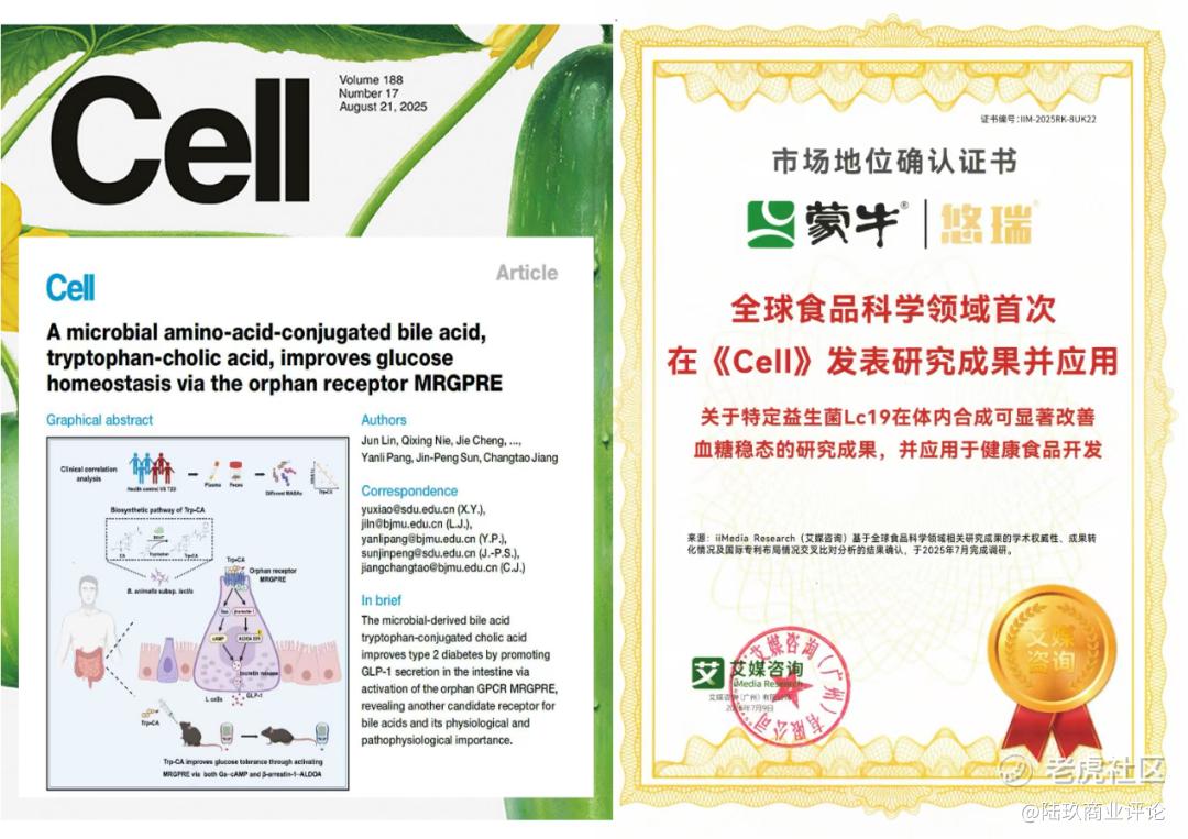 2025年,蒙牛的乳铁蛋白、酵素酪蛋白、脱盐乳清粉等产品,已经达到了国际标准;马斯卡彭奶酪、原制马苏里拉奶酪也相继下线,一步步打破了技术瓶颈和进口依赖。专业乳品方面,推出了新国标稀奶油等十多款新品,持续加深与烘焙、B端品牌的合作。运动营养品牌“迈胜”完成近亿元A轮融资,消费者和资本都在买单。自主研发的益生菌Lc19登上国际顶级期刊《Cell》,并已实现产业化应用。