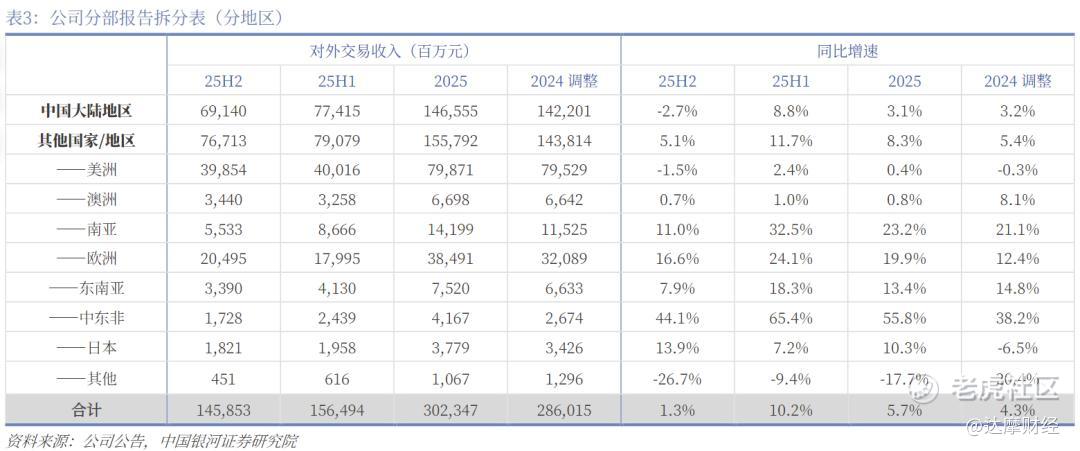 在全部海外市场中,欧洲市场的增长最为亮眼,2025年营收增长19.9%至384.91亿元。但在另一个主要海外市场美洲,海尔智家的表现相对疲软,全年营收增长0.4%至798.71亿元。