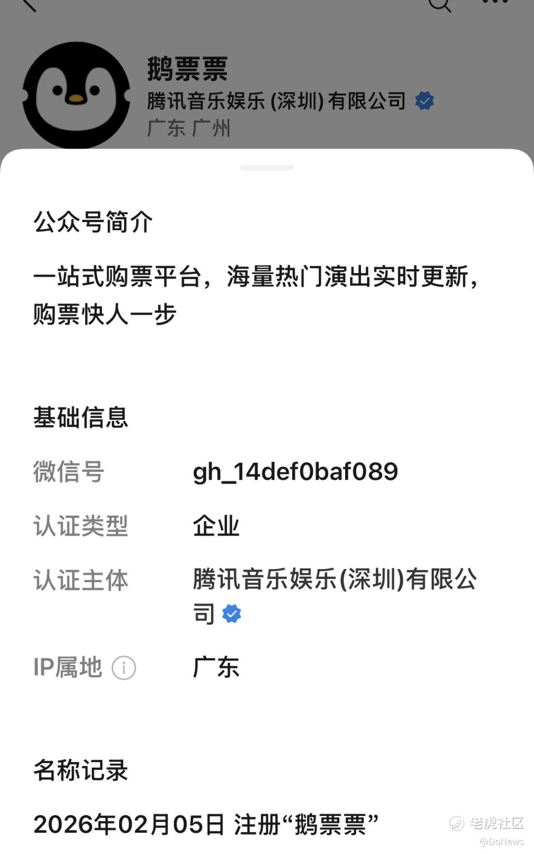 信息显示,“鹅票票”的前身是“TME演出”,其认证主体为腾讯音乐娱乐(深圳)有限公司,服务类目明确标注为“营业性演出票务”。从去年12月完成初始注册,到今年2月正式定名,鹅票票,用短短三个月时间,完成了从低调筹备到正式亮相的过程。