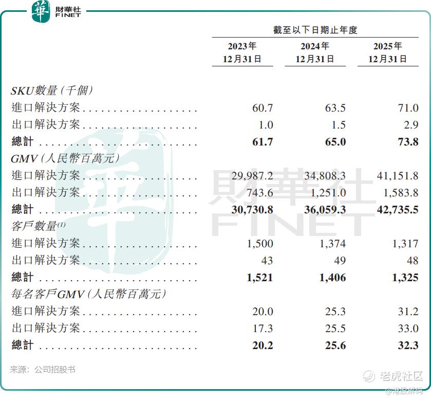 值得注意的是,华富洋的客户结构正在发生深刻变化。其客户总数从2023年的1521家下降至2025年的1325家,但每名客户贡献的GMV从2020万元飙升至3230万元。这说明公司正在执行一项清晰的战略:聚焦大客户,以量换价。