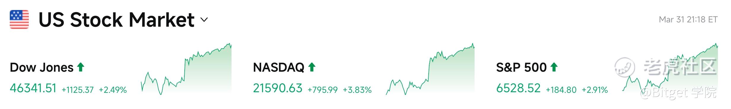 标普 500:涨 184.80 点,报 6528.52 点,涨幅 2.91%,受益于地缘风险快速消化。