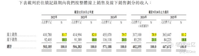 但到了净利率,2024年铜师傅净利率约13.8%,高于朱炳仁·铜的10.2%。这与渠道结构有关,铜师傅主要依赖线上,2022年、2023年、2024年、2025年前三季度,其线上渠道销售占比分别为81.7%、82%、79.7%、81.2%。线下布局起步较晚,截至2025年9月仅18家直营店、63家授权门店。