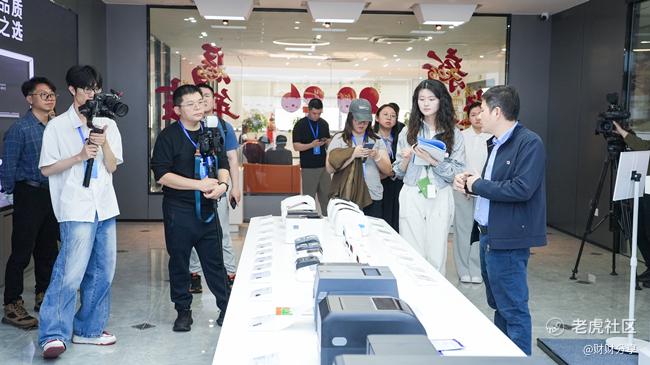 在展厅内,采访团成员近距离观摩了覆盖家用、商用、工业等多场景的打印机产品线。从一线快递面单打印机到便携式热敏打印机,从3寸餐饮零售专供标签打印机到双色热敏标签打印机、热转印与热敏双模式打印设备,再到家用便捷打印机、ai打印机、彩色喷墨打印机,丰富的产品矩阵引发记者们浓厚兴趣。工作人员现场演示了自研APP“爱印”“标签管家”及云打印管理平台的操作流程,展示了企业在智能打印软件生态、移动端与电脑端协同打印方面的集成创新能力。