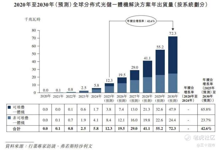 根据弗若斯特沙利文数据,全球分布式光储一体机解决方案出货量预计将从2025年的12.3千兆瓦时增长至2030年的72.3千兆瓦时,年复合增长率42.6%。思格作为该细分赛道的定义者与领导者,正处于市场爆发的最佳卡位点。