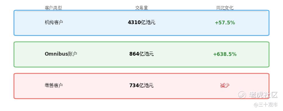 毛利率从73.9%降到56.5%,有人担心。但这事儿得这么看:交易毛利率41%确实低了,但换来的是机构客户爆发。这叫"以价换量",锁定的都是大资金、长周期的专业玩家,比散户高频交易稳定得多。