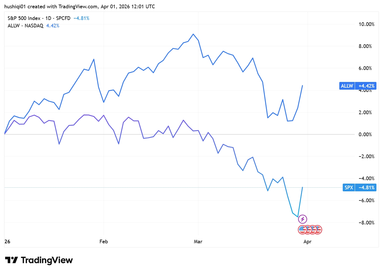 尽管 $标普500(.SPX)$ 因人工智能估值回调和通胀担忧而回撤数周,年内收跌4.63%,但同期 $SPDR BRIDGEWATER ALL WEATHER ETF(ALLW)$ 年内涨幅4.95%。