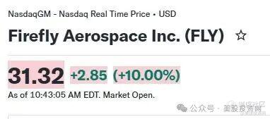 昨天,美股投资网文章已经预告过,小SpaceX之称的 Firefly Aerospace Inc. ( $Firefly Aerospace Inc.(FLY)$ ) 今天继续暴涨10%。
