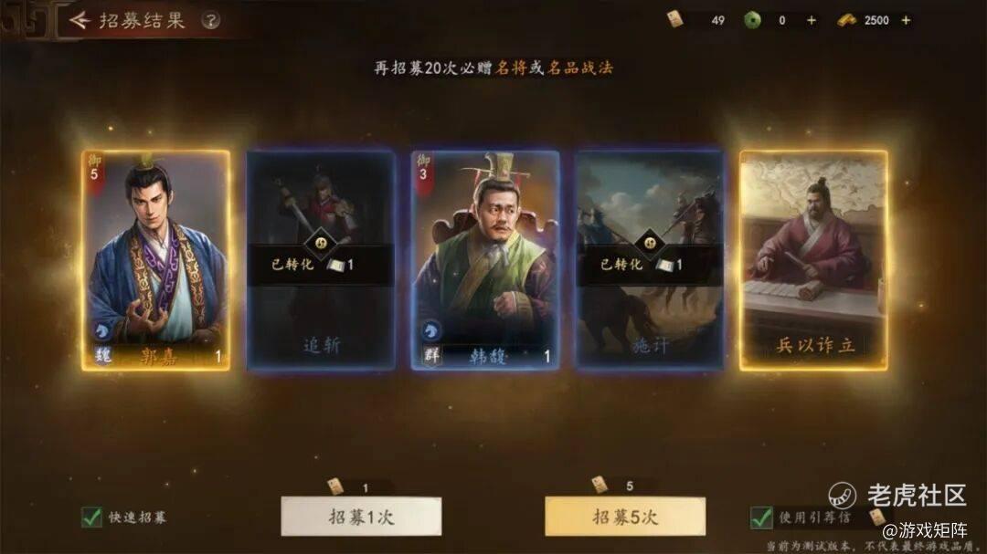 要说明的是,本作不再采用武将转战法的设计,而是直接在卡池中抽战法,省去了很多繁琐的操作。另外游戏中战法也可以升星。