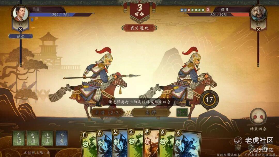 游戏不仅为这个对战系统设计了个性的皮影戏界面,还设计了一套参考单机游戏的对局规则。玩家不但要考虑天、地、人的类“剪刀石头布”规则,还要如打牌般凑出顺子或对子才能取胜。而《三国志》单机游戏中的单挑或舌战技能,也延续到了本作之中变成各种buff,给了玩家绝地翻盘的机会。